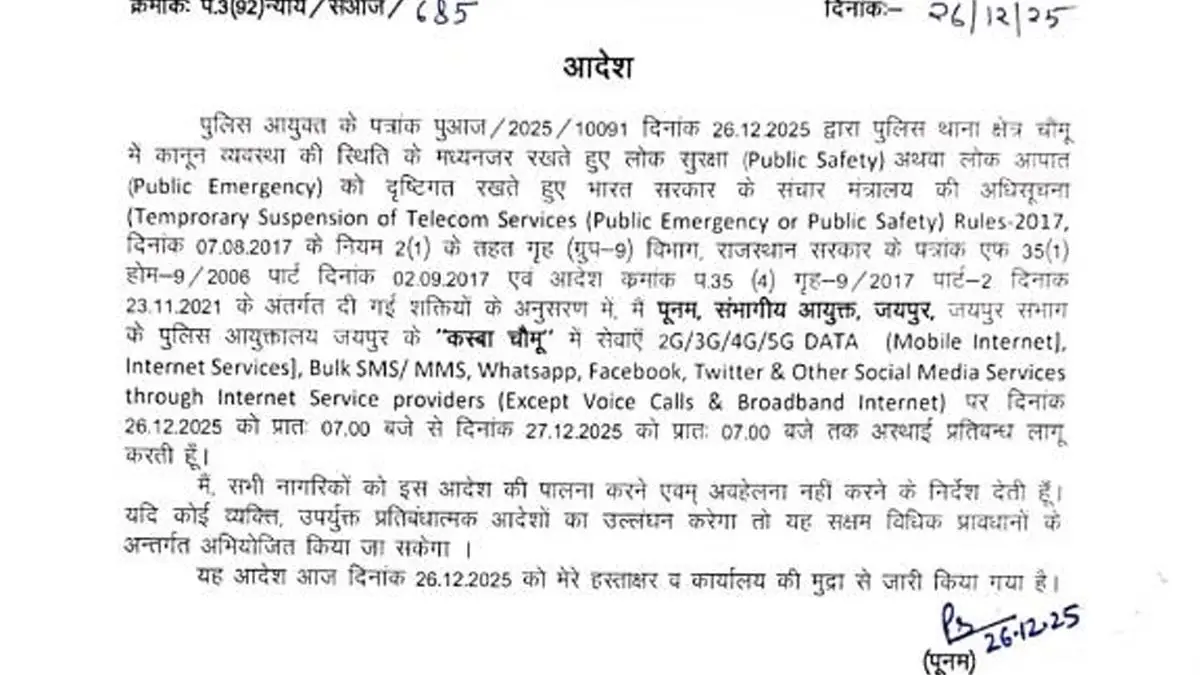 फिलहाल, पूरे कस्बे में भारी संख्या में पुलिस बल तैनात किया गया है. इसके बाद हालात नियंत्रण में है और शांति व्यवस्था कायम है. इधर, हालात को देखते हुए जिला प्रशासन ने चौमूं में इंटरनेट सेवा पर प्रतिबंध लगा दिया है. वहां आज सुबह 7 बजे से शनिवार सुबह तक के लिए इंटरनेट सेवा पर पाबंदी लगाई गई है.