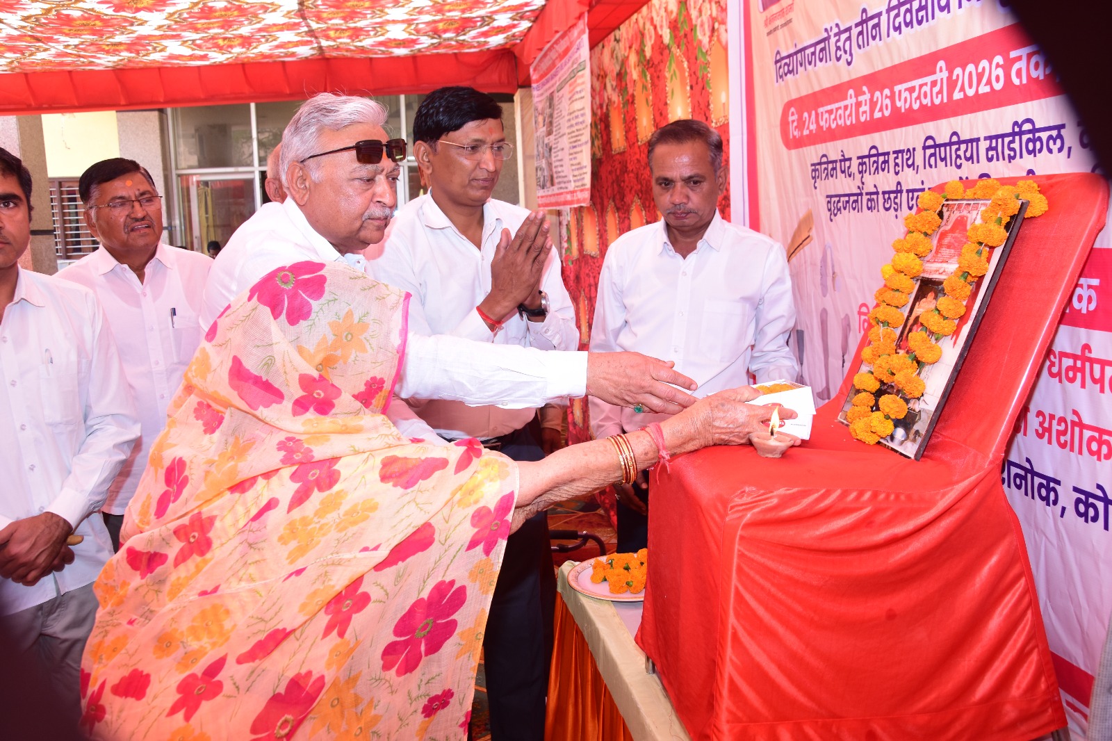 अबतक इंडिया न्यूज देशनोक 24 फरवरी । ‘ नर सेवा ही नारायण सेवा ‘ की तर्ज पर मानव व सामाजिक सेवा में अग्रणी सेवारत बोथरा फाउंडेशन देशनोक द्वारा मंगलवार से तीन दिवसीय निःशक्तजन विशाल सेवा शिविर का शुभारंभ करणी मन्दिर देशनोक के शास्त्रोक्त आचार्य नरेंद्र कुमार मिश्र द्वारा दीप प्रज्ज्वलन के साथ हुआ ।शिविर का उद्घाटन सामाजिक न्याय व अधिकारिता विभाग बीकानेर के निदेशक एल डी पंवार द्वारा किया गया।शिविर में मौके पर ही दिव्यांग जनों को निशुल्क सहायक उपकरण उपलब्ध करवाए जा रहे हैं।बोथरा फाउंडेशन के कैलाश बोथरा ने बताया कि इस शिविर में जरूरतमंद निःशक्तजनों को निशुल्क जयपुर फुट ,केलिपर, कृतिम हाथ ,तिपहिया साइकिल,व्हील चेयर ,वैशाखी व वृद्धजनों के लिए कान की मशीन एवं छड़ी वितरित किए जा रहे हैं।साथ ही दिव्यांग जनों की आवश्यकता अनुसार कृतिम हाथ व पैर मौके पर बनाकर दिए जा रहे हैं।शिविर में दिव्यांगजनों की भारी उमड़ी हैं।