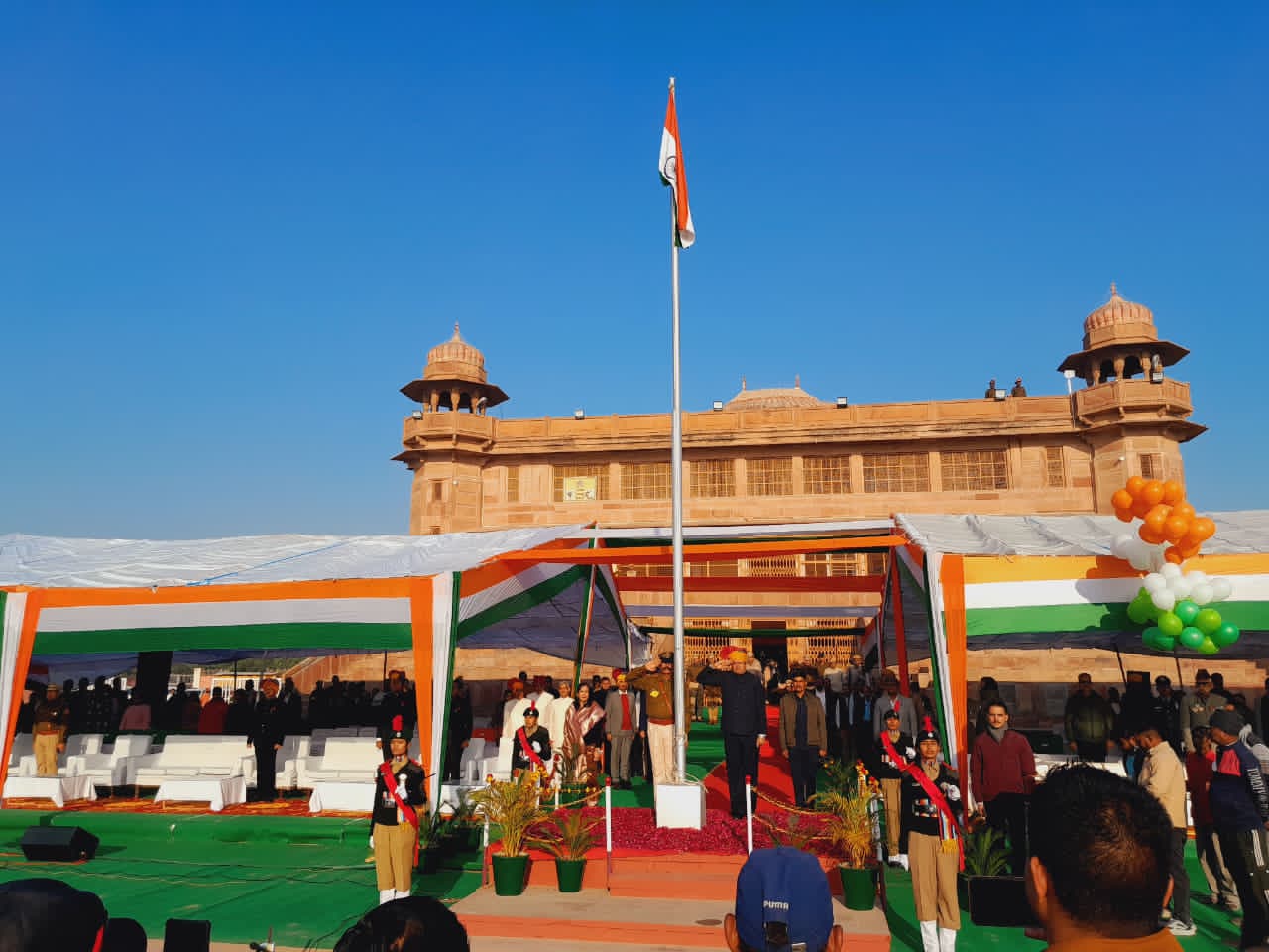 इस दौरान संभागीय आयुक्त विश्राम मीणा, महानिरीक्षक पुलिस हेमंत शर्मा, जिला कलेक्टर श्रीमती नम्रता वृष्णि, पुलिस अधीक्षक कावेन्द्र सिंह सागर, कैबिनेट मंत्री की धर्मपत्नी श्रीमती शांता चौधरी, नगर निगम आयुक्त मयंक मनीष, बीडीए आयुक्त श्रीमती अपर्णा गुप्ता, सीईओ जिला परिषद सोहनलाल, एडीएम प्रशासन सुरेश कुमार यादव, एडीएम सिटी रमेश देव, एडिशनल एसपी चक्रवर्ती सिंह राठौड़, एसडीएम बीकानेर आईएएस सुश्री महिमा कसाना, आईएएस सुश्री स्वाति शर्मा, निगम उपायुक्त यशपाल आहूजा, समेत अन्य अधिकारी मौजूद रहे। कार्यक्रम में मंच संचालन कलेक्ट्रेट के प्रशासनिक अधिकारी संजय पुरोहित, सहायक पर्यटन अधिकारी श्रीमती नेहा शेखावत, आईजीएनपी द्वितीय की लेखाधिकारी श्रीमती गुंजन चोपड़ा ने किया।