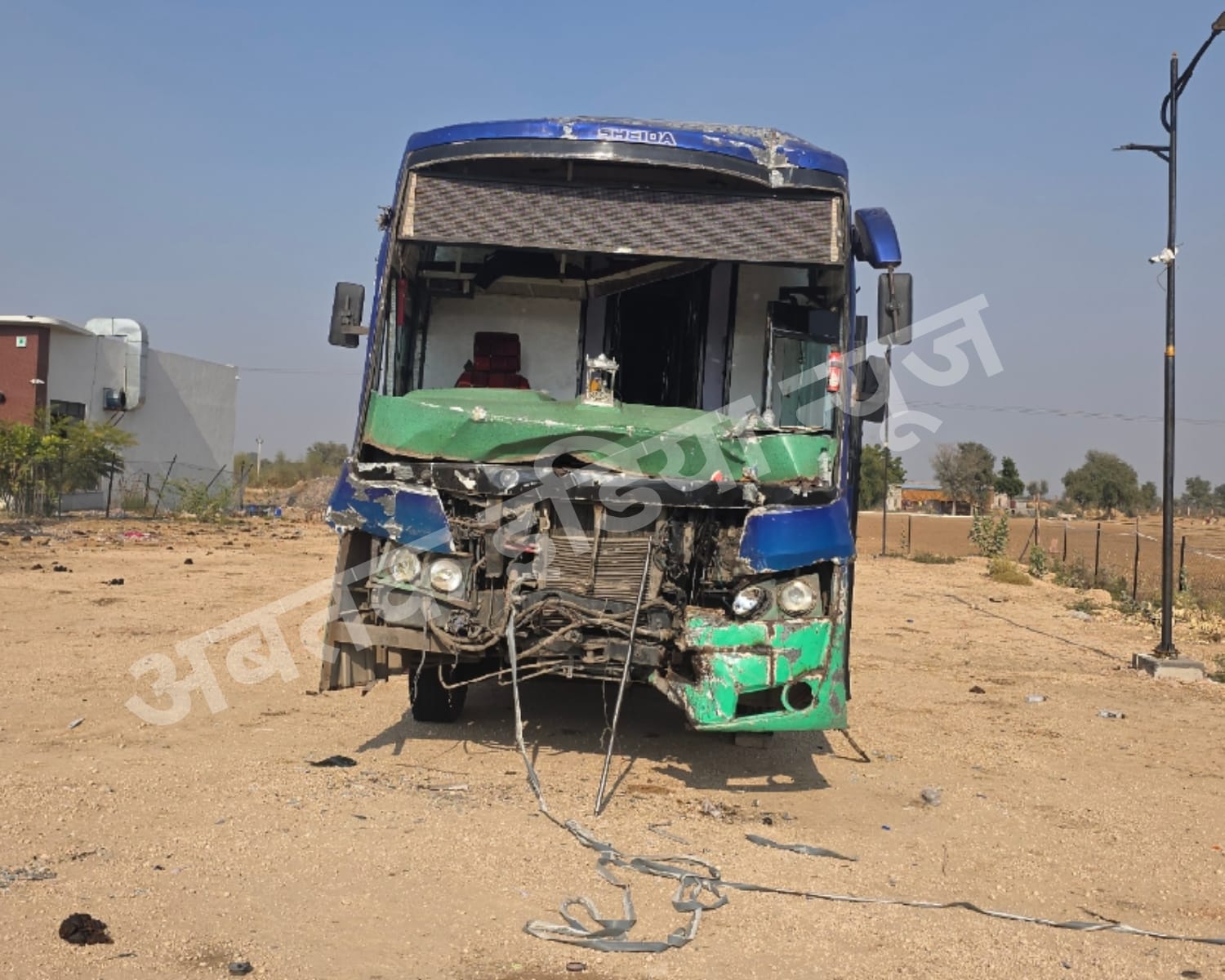 देशनोक : खड़े ट्रक को स्लीपर बस ने मारी टक्कर, कई यात्री घायल, बस का फ्रंट पार्ट डैमेज