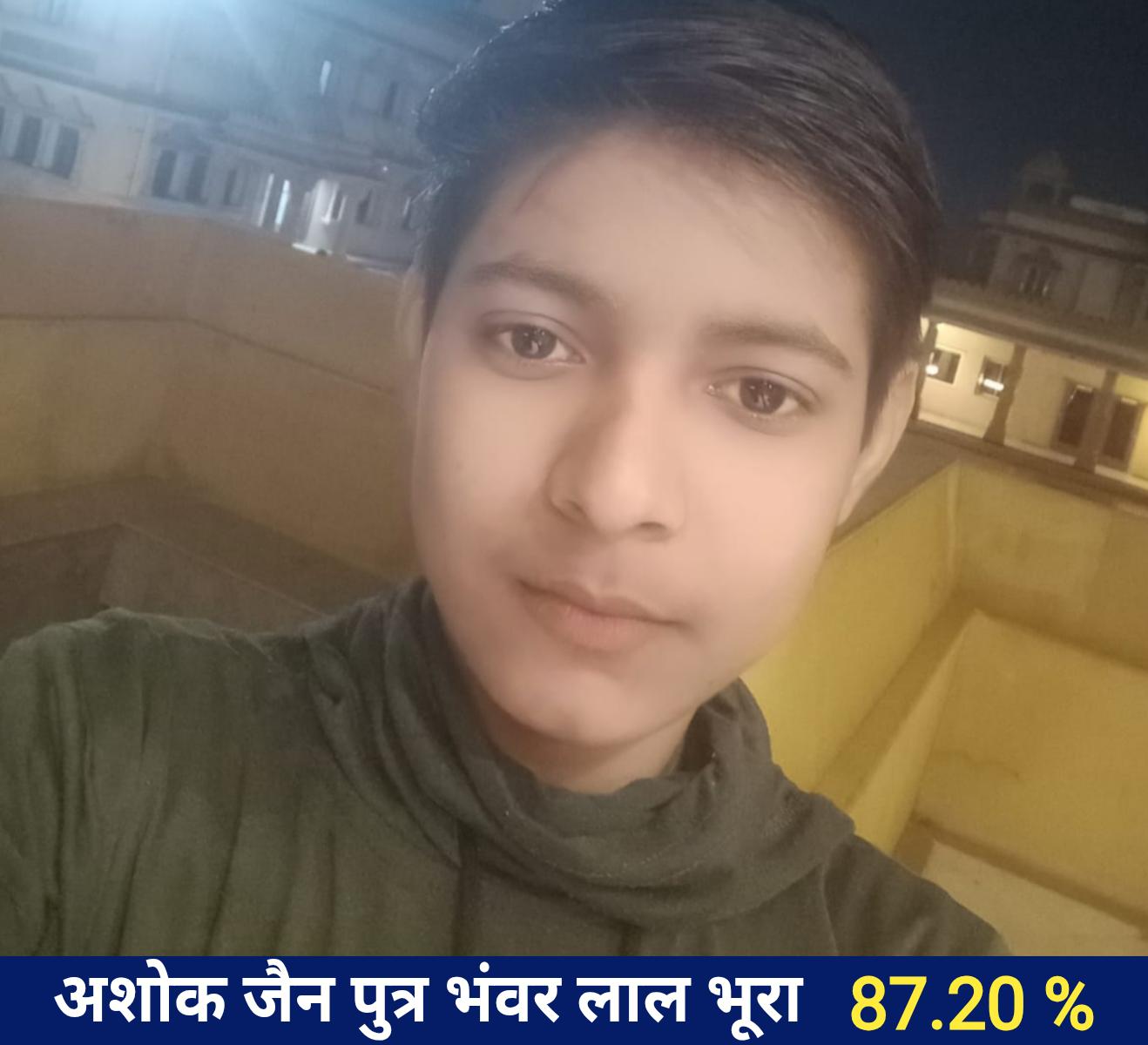 कुल छात्र 10 ,प्रथम श्रेणी- 8,द्वितीय श्रेणी -2, प्रथम स्थान – अशोक जैन पुत्र भंवरलाल जैन 87.20,