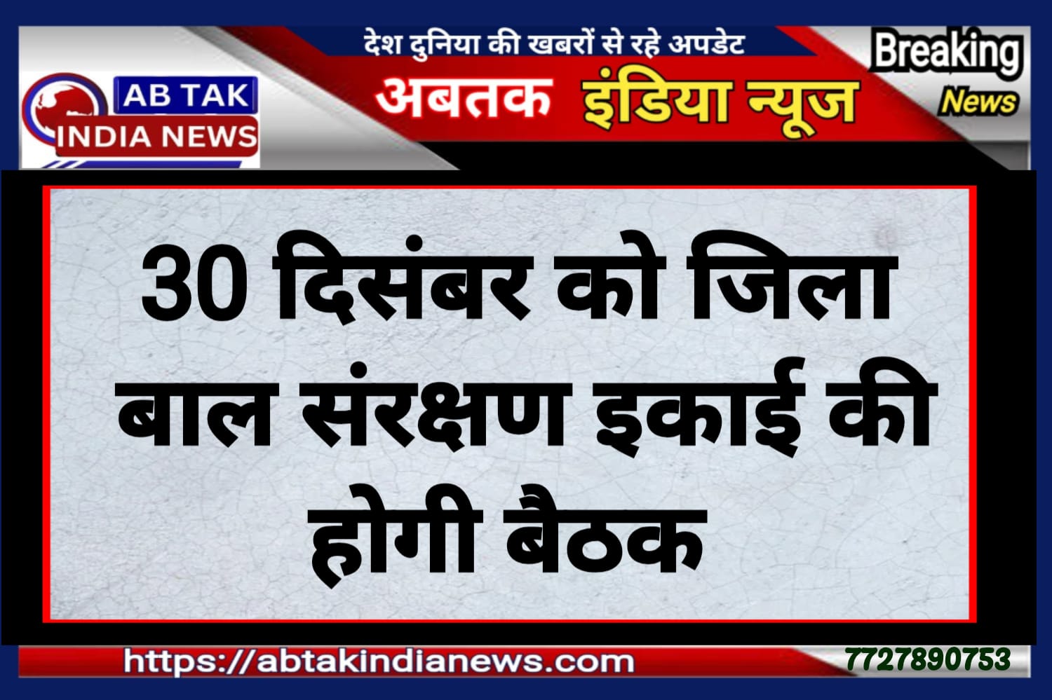अबतक इंडिया न्यूज बीकानेर 23 दिसंबर। जिला कलक्टर श्रीमती नम्रता वृष्णि की अध्यक्षता में जिला स्तर पर बाल संरक्षण के क्रम में गठित जिला बाल संरक्षण इकाई से संबंधित कार्यों की समीक्षा बैठक मंगलवार (30 दिसंबर) को प्रातः 11 बजे कलेक्टर सभागार में आयोजित होगी।यह जानकारी जिला बाल संरक्षण इकाई एवं बाल संरक्षण अधिकारिता विभाग के सहायक निदेशक अरूण सिंह शेखावत ने दी।