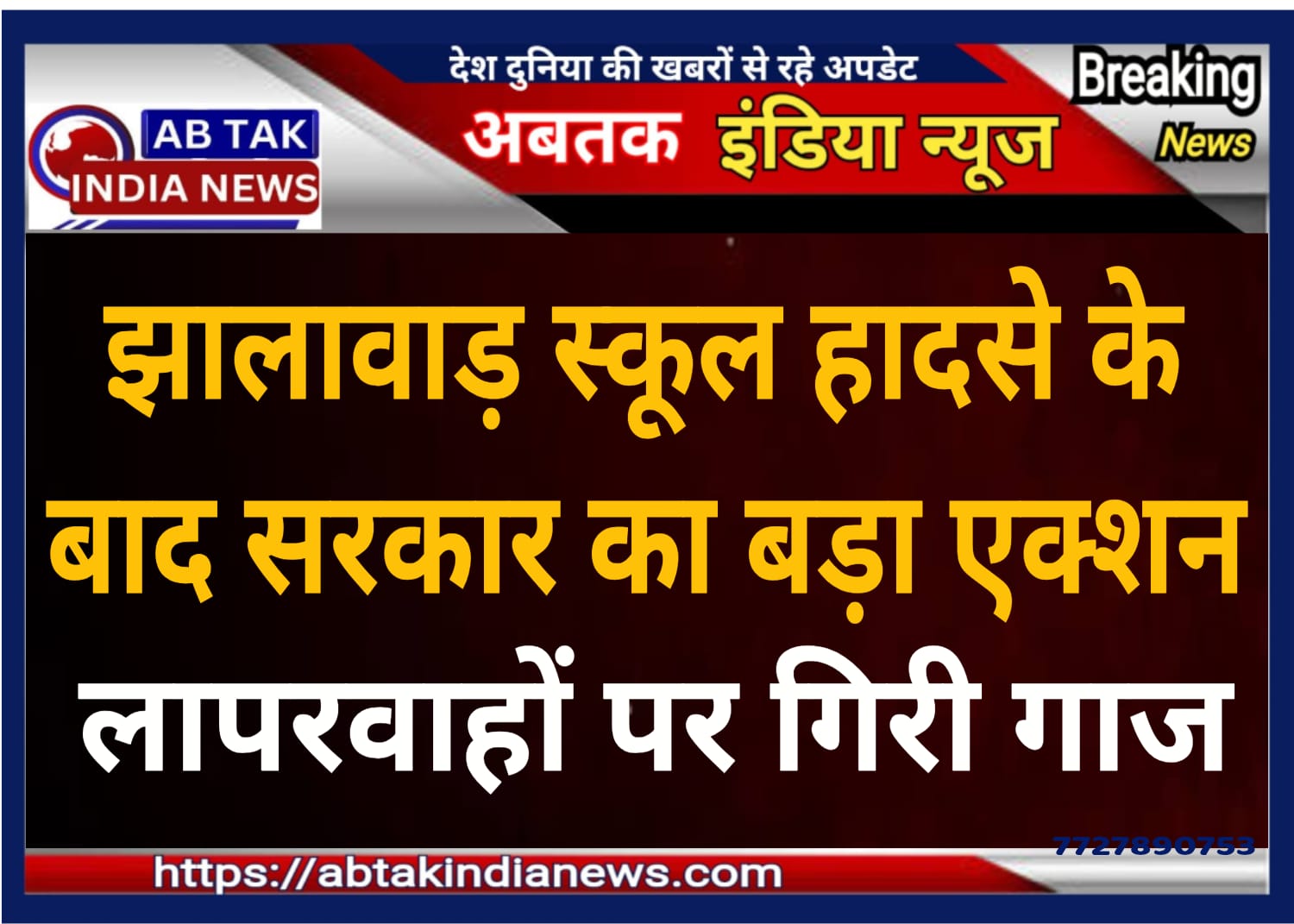 अबतक इंडिया न्यूज 25 जुलाई । राजस्थान के झालावाड़ में शुक्रवार सुबह स्कूल की दीवार और छत के गिरने से कोहराम मच गया. ऐसा नहीं है कि इस हादसे की दस्तक की स्कूल प्रशासन से लेकर शिक्षा विभाग को जानकारी नहीं थी. लेकिन शायद इस हादसे का इंतजार किया जा रहा था. इस घटना के असल जिम्मेदार कौन है यह बाद में तय किया जाएगा. लेकिन स्कूल में पढ़ाने वाले शिक्षक और प्रिंसिपल भी बेसुध थे, जिसका खामियाजा आज 7 छात्रों ने जान गंवा कर भुगता है. हादसे में अब भी 27 बच्चे घायल हैं. वहीं शिक्षा विभाग जो घटना से पहले स्कूल को लेकर संज्ञान ले सकता था लेकिन ऐसा करने में वह भी पीछे रही. लेकिन घटना के बाद स्कूल के प्रिंसिपल और शिक्षकों पर एक्शन ले लिया है.
