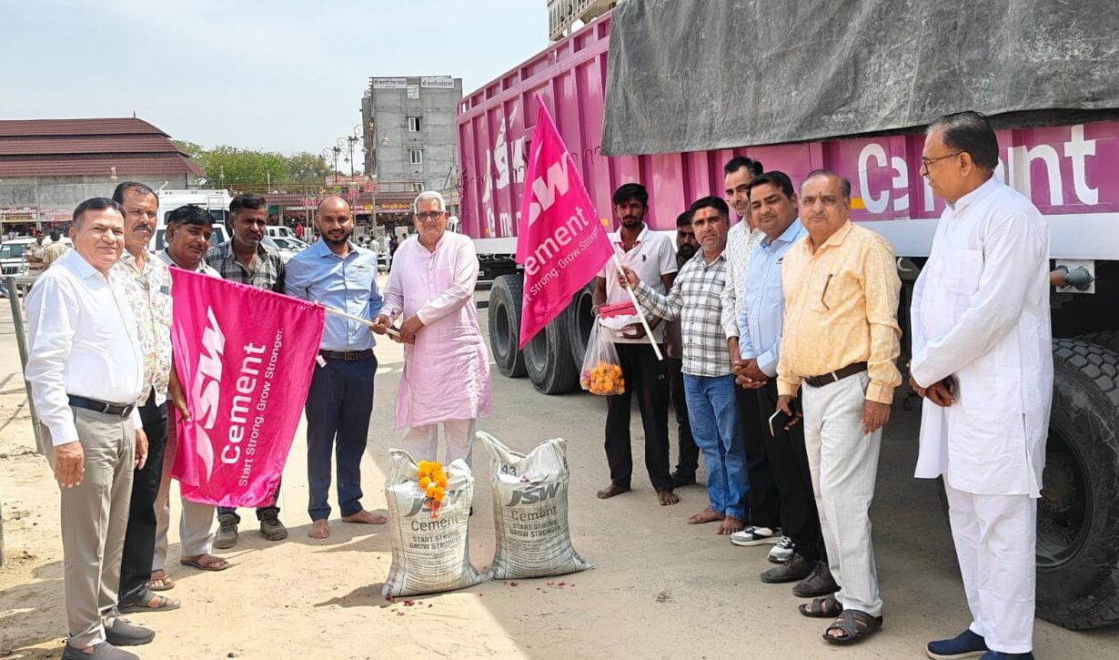 जेएसडब्ल्यू सीमेंट कंपनी ने 800 सीमेंट बेग करणी माता मंदिर में की भेंट, प्रन्यास ने स्वागत कर जताया आभार