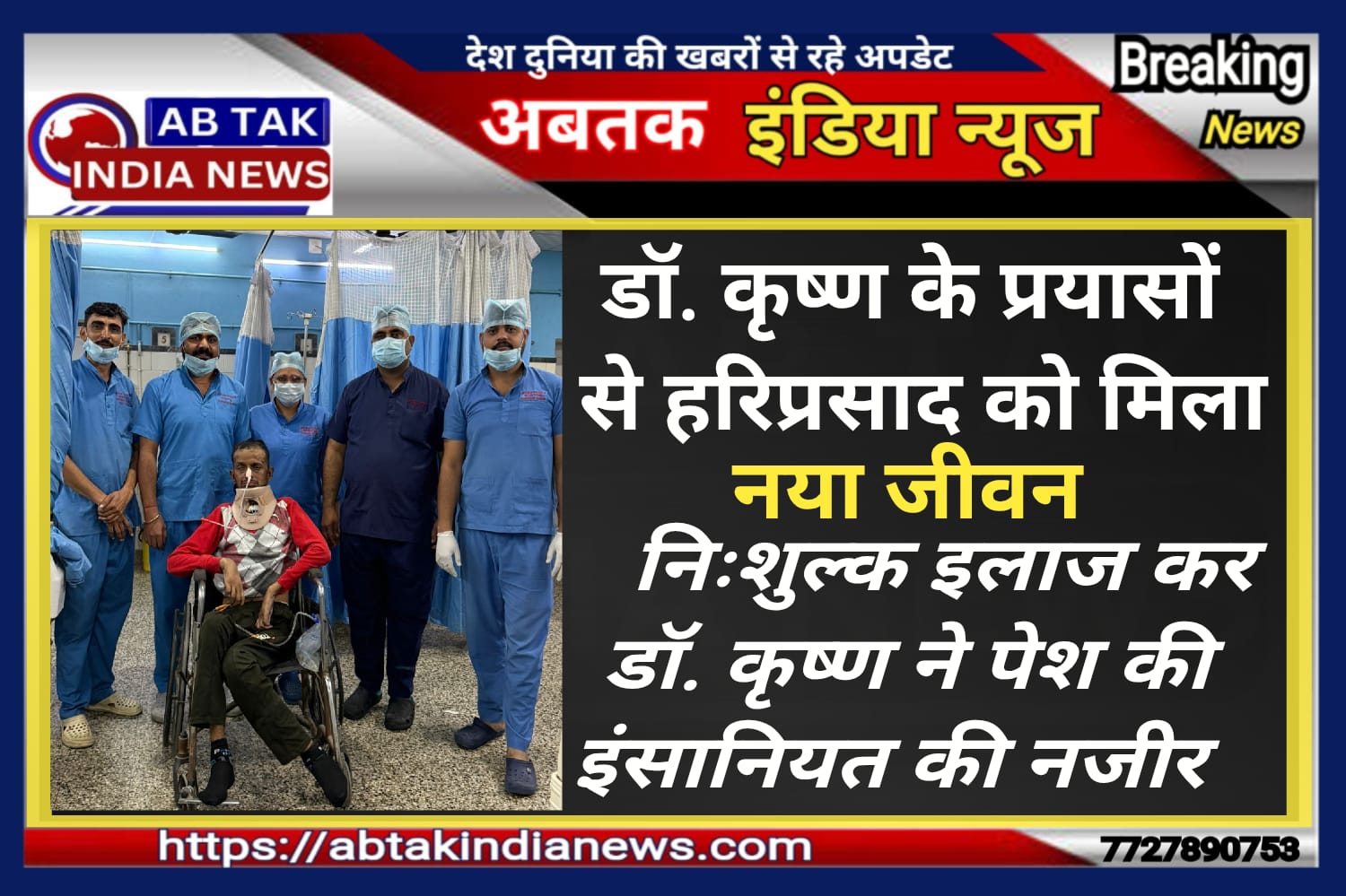 सादुलगंज निवासी हरिप्रसाद मेघवाल एक्सीडेंट में घायल होकर कोमा में चला गया था जो पिछले 8 महीना से कोमा में ही था। नवम्बर में हरिप्रसाद की मां उसके पास आई और जीवन रक्षा में दिखाने की बात कहती हुई काफी खर्चा होना बताया। इस पर पूर्व पार्षद मनोज बिश्नोई ने न्यूरोसर्जन डॉक्टर कृष्ण वीर से इलाज के लिए निवेदन किया और पैसे कम करने के लिए कहा। मगर डॉ साहब ने कहा कि मैं सारा इलाज फ्री में करूंगा आप तुरंत मरीज को जीवन रक्षा हॉस्पिटल में एडमिट कराए। आज 1 महीना 8 दिन के बाद पूरा निशुल्क इलाज करने के बाद हरिप्रसाद को स्वस्थ होने पर छुट्टी दी। गरीब परिवार को देखते हुए डॉक्टर का निर्णय बहुत ही सराहनीय है। पूर्व पार्षद मनोज बिश्नोई ने भी डॉ क्टर का आभार प्रकट किया।