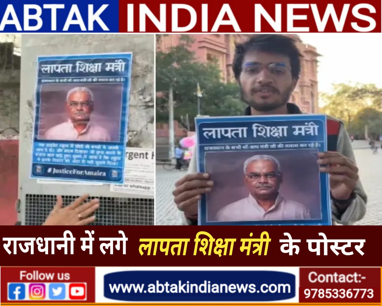 संस्था की संस्थापक सदस्य शशि मीणा ने आरोप लगाया कि पूरे राज्य की शिक्षा व्यवस्था ठप पड़ चुकी है. न स्कूलों में गुणवत्ता है, न शिक्षकों की समस्याओं पर ध्यान है, और न ही छात्रों की सुरक्षा सुनिश्चित की जा रही है. उन्होंने कहा कि आज पूरे राजस्थान के मां-बाप मंत्री जी को ढूंढ रहे हैं, क्योंकि बच्चों के भविष्य का सवाल है. पोस्टर में यह संदेश दिया गया है कि “सूचना मिलने पर तुरंत संपर्क करें”.