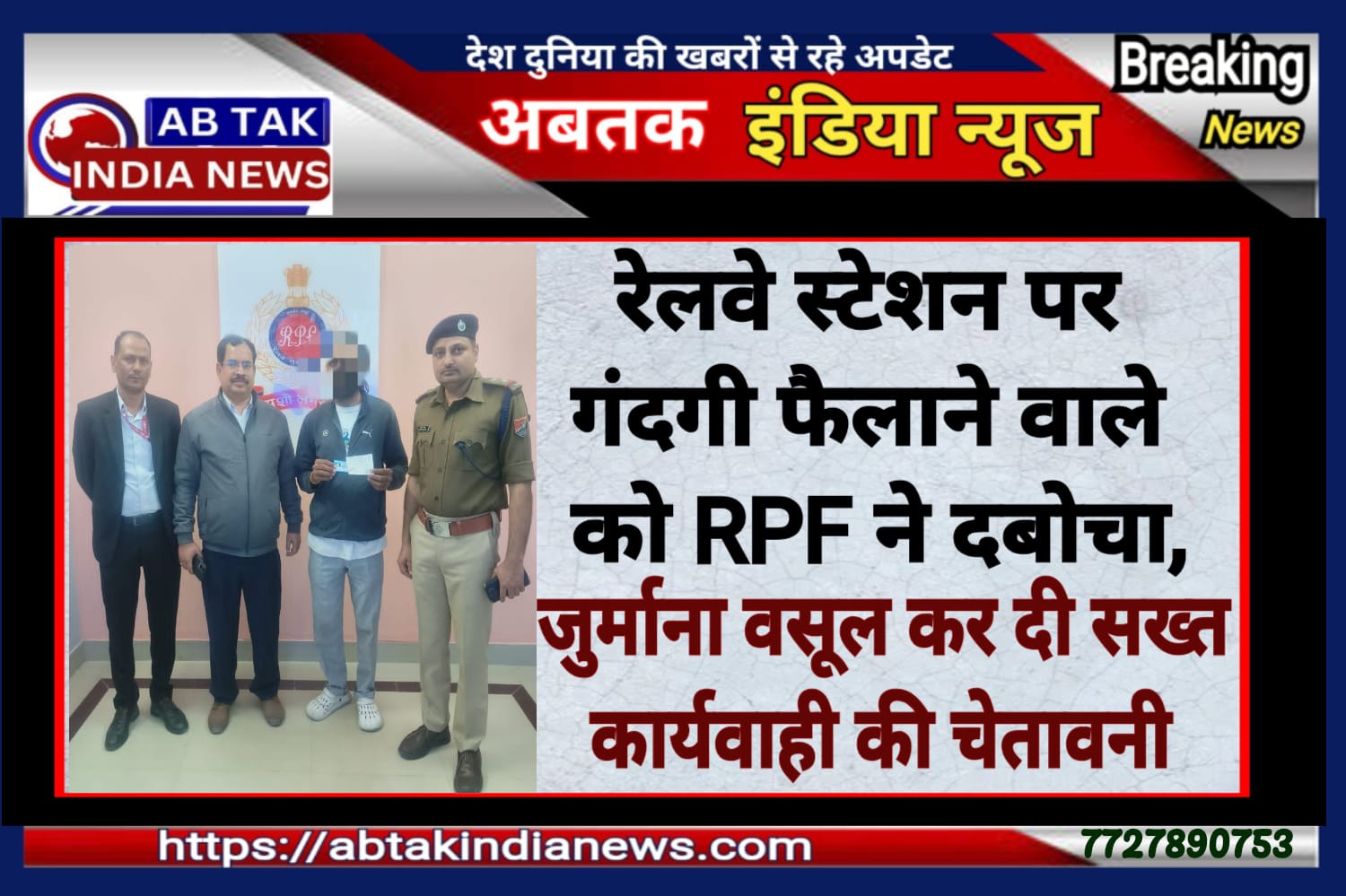 आरपीएफ द्वारा त्वरित कार्रवाई करते हुए संबंधित युवक की पहचान की गई तथा स्टेशन परिसर में गंदगी फैलाने के आरोप में उसके विरुद्ध नियमानुसार कार्रवाई करते हुए आर्थिक जुर्माना लगाया गया।