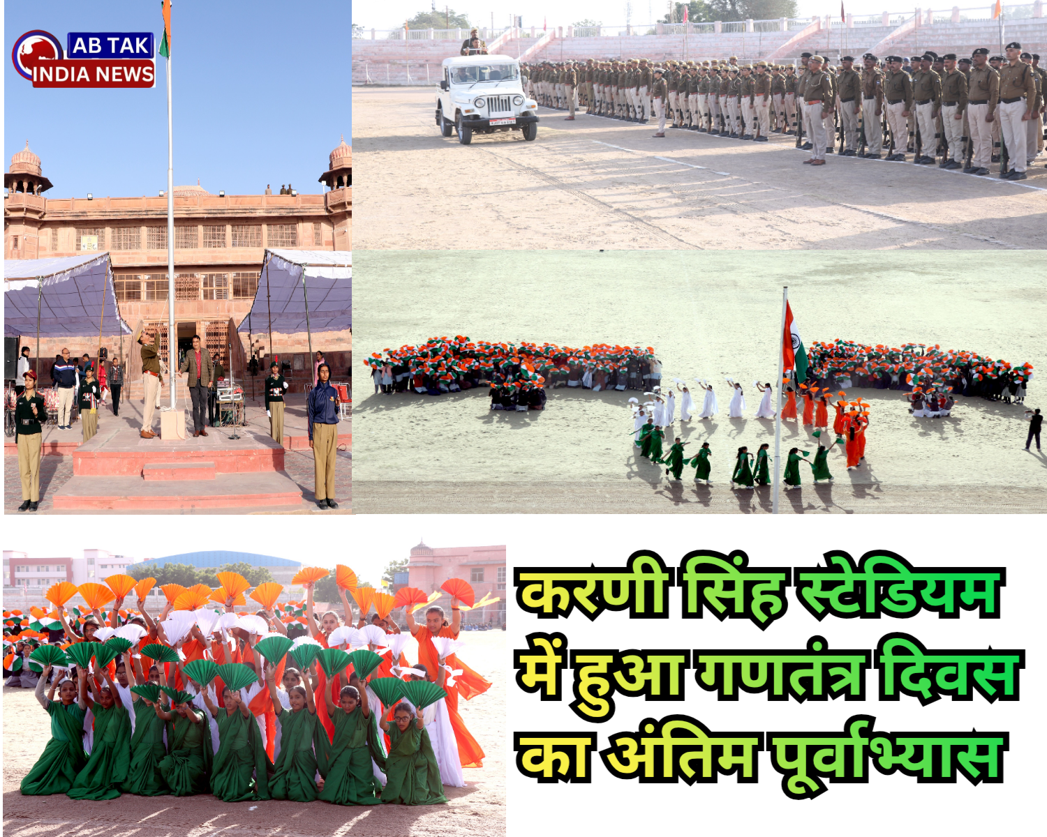 अबतक इंडिया न्यूज बीकानेर, 24 जनवरी। गणतंत्र दिवस समारोह का अंतिम पूर्वाभ्यास शनिवार को सुबह 9 बजे डॉ. करणी सिंह स्टेडियम में आयोजित हुआ। रिहर्सल के दौरान विभिन्न विभागों, पुलिस बल, एनसीसी, स्काउट-गाइड तथा विद्यालयी छात्र-छात्राओं द्वारा परेड एवं सांस्कृतिक प्रस्तुतियों का अंतिम अभ्यास किया ।अंतिम रिहर्सल के दौरान सभी प्रतिभागियों ने उत्साह और अनुशासन के साथ भाग लिया।