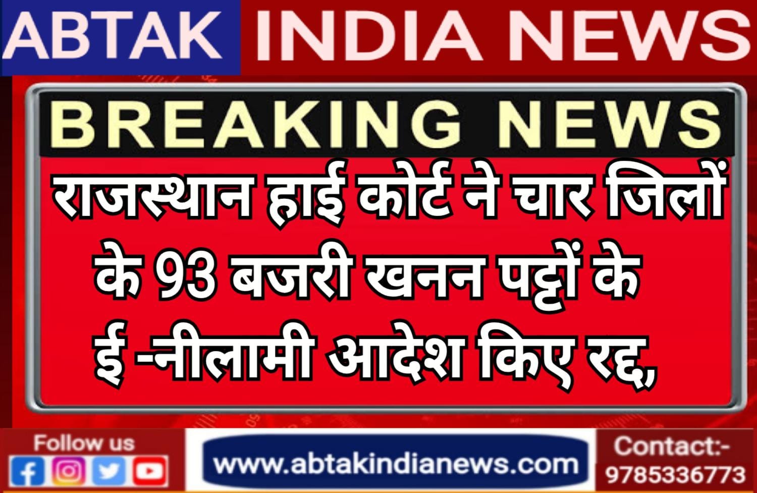 अबतक इंडिया न्यूज 20 जनवरी जयपुर: राजस्थान हाईकोर्ट ने प्रदेश के चार जिलों (भीलवाड़ा, बाडमेर, टोंक एवं सिरोही) के करीब 93 बजरी खनन पट्टों के ई-नीलामी आदेश रद्द कर दिए. साथ ही अदालत ने राज्य सरकार को रिपोर्ट तैयार करने को कहा, जहां से बजरी निकाली जाएगी और वहां बजरी का पुनर्भरण कैसे होगा. अदालत ने कहा कि राज्य सरकार यह रिपोर्ट हाईकोर्ट में पेश करे और चाहे तो मामले में सुप्रीम कोर्ट में लंबित याचिका में इस रिपोर्ट को रखे. अदालत ने कहा कि नियम से एक बार खनन की अवधि पूरी होने के बाद वहां अगले पांच साल खनन नहीं होता है.